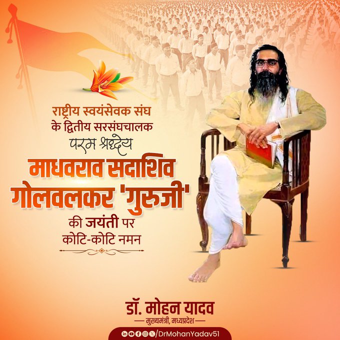 मुख्यमंत्री डॉ. यादव ने माधवराव सदाशिव गोलवलकर 'गुरुजी' और छत्रपति शिवाजी महाराज की जयंती पर किया नमन