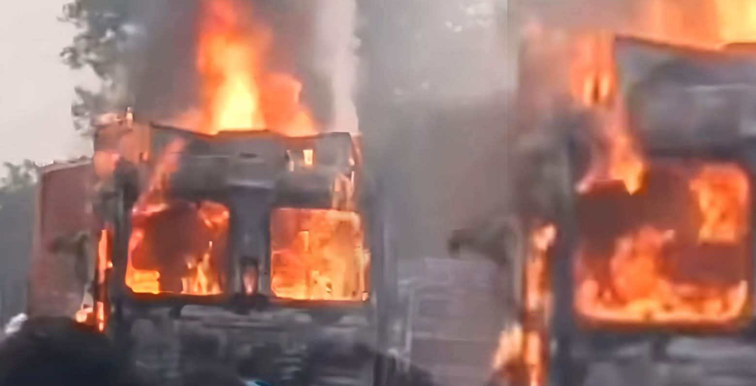 डेबरा में राष्ट्रीय राजमार्ग पर चलती लॉरी में लगी आग, यातायात प्रभावित