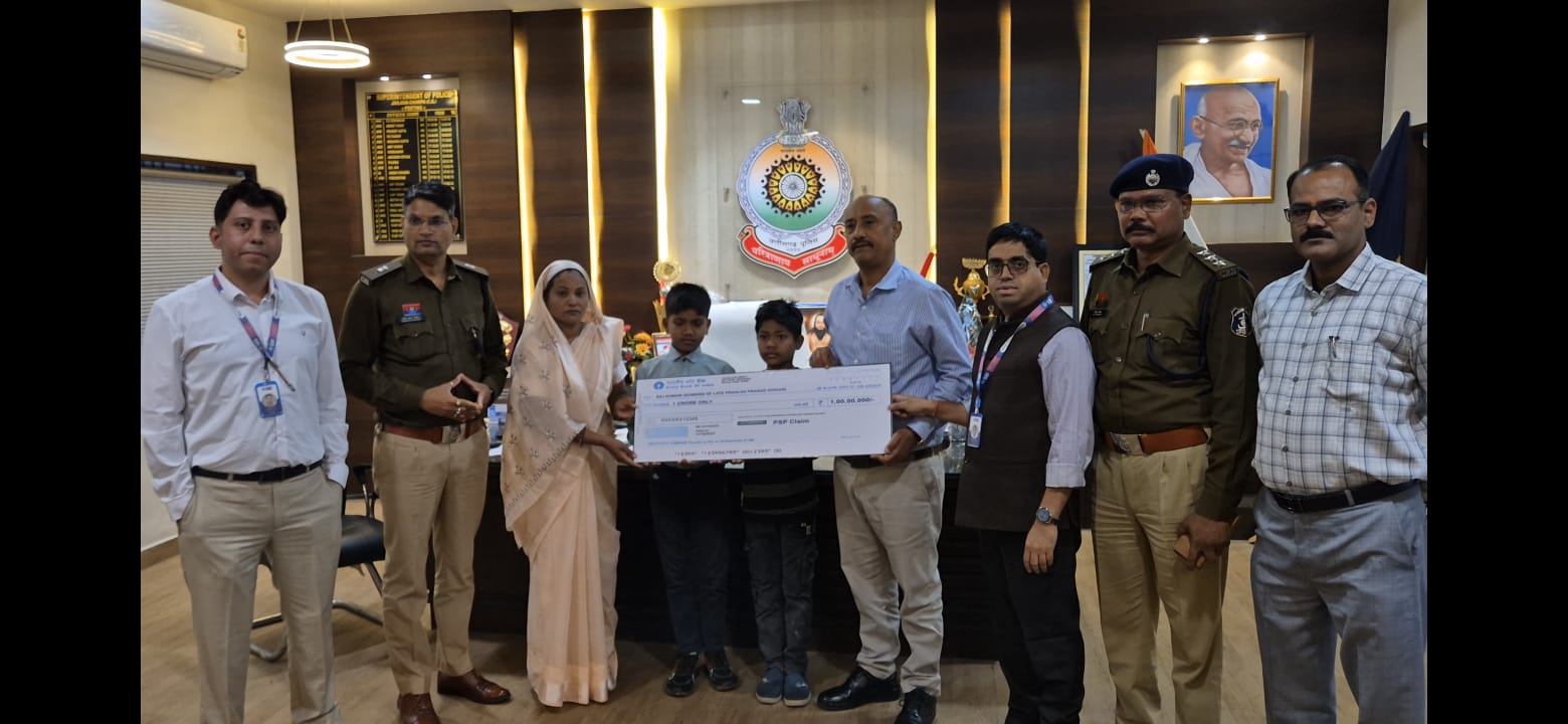 स्वर्गीय आरक्षक की पत्नी को पुलिस सैलरी पैकेज के तहत मिला एक करोड़ रुपये का बीमा चेक