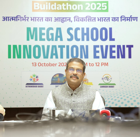छात्रों संग बेंच पर बैठे शिक्षा मंत्री धर्मेंद्र प्रधान, 'विकसित भारत बिल्डाथॉन' शुरूॉ