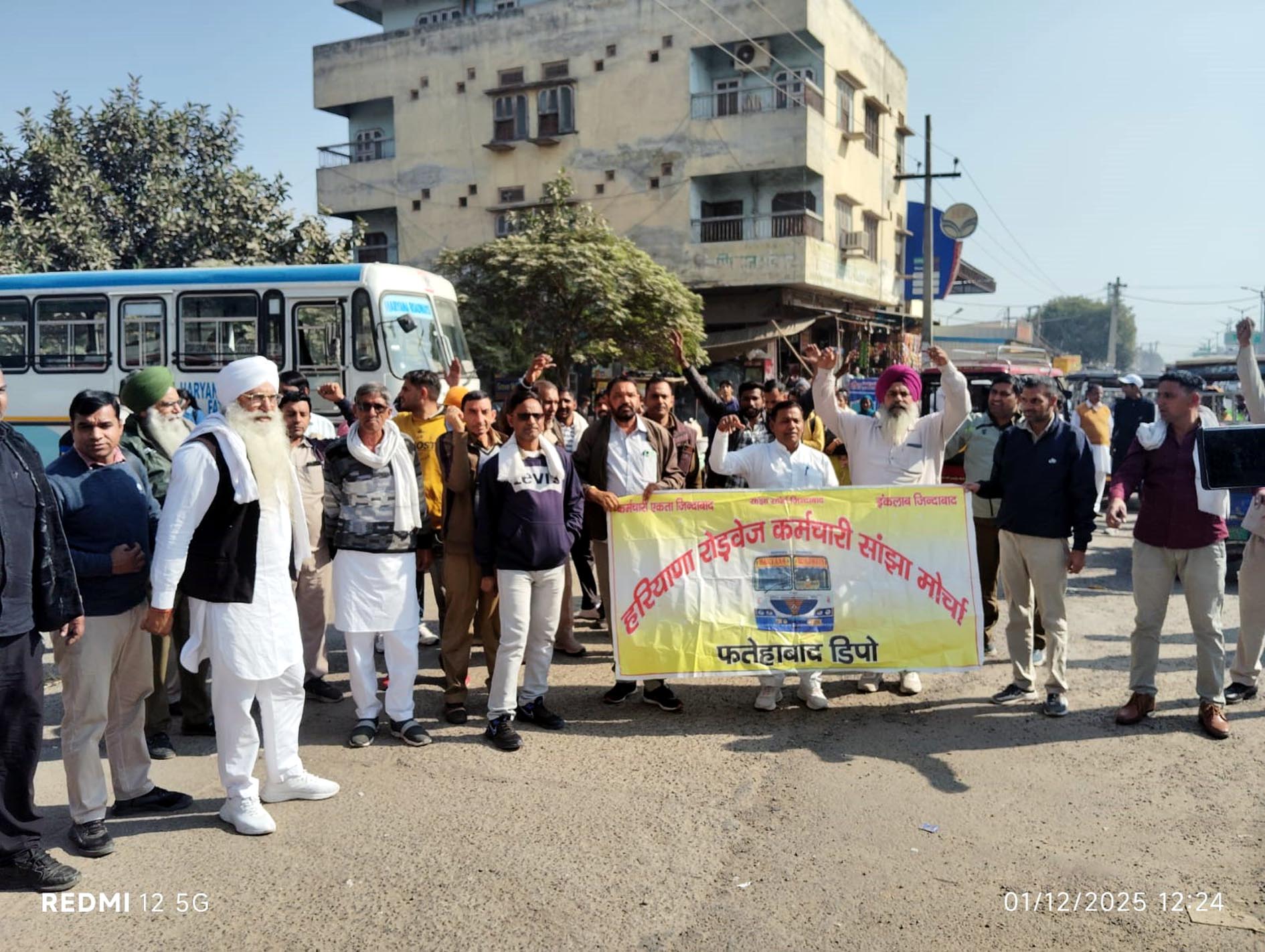 पंजाब में कर्मचारियों पर लाठीचार्ज के विरोध में फतेहाबाद रोडवेज कर्मचारियों ने किया प्रदर्शन